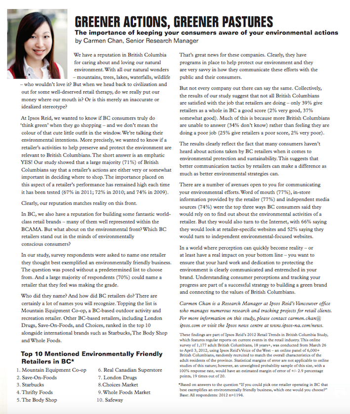 As a long-time sponsor of the BCAMA, Ipsos regularly contributed articles for their print publication made available at high-profile events. Here is a ghost-written sample from 2012.